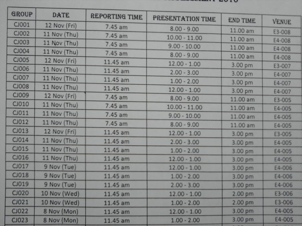 CJ 008 11 Nov 2010 11.45 AM 12:00-13:00 3 PM E4-007